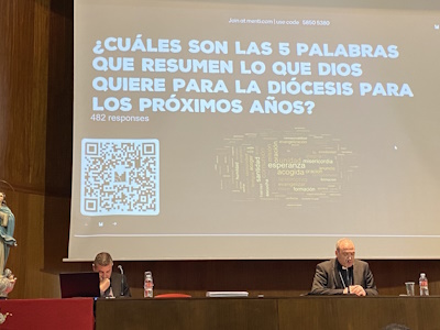 El pasado sábado 28 de septiembre de 2024 se celebró un encuentro de todas las realidades eclesiales de la diócesis con el Obispo Complutense. Allí estuvimos un grupo de personas representando a la Pastoral Universitaria. El Obispo nos planteó el plan pastoral que resume lo que Dios quiere para nuestra diócesis en 5 palabras: